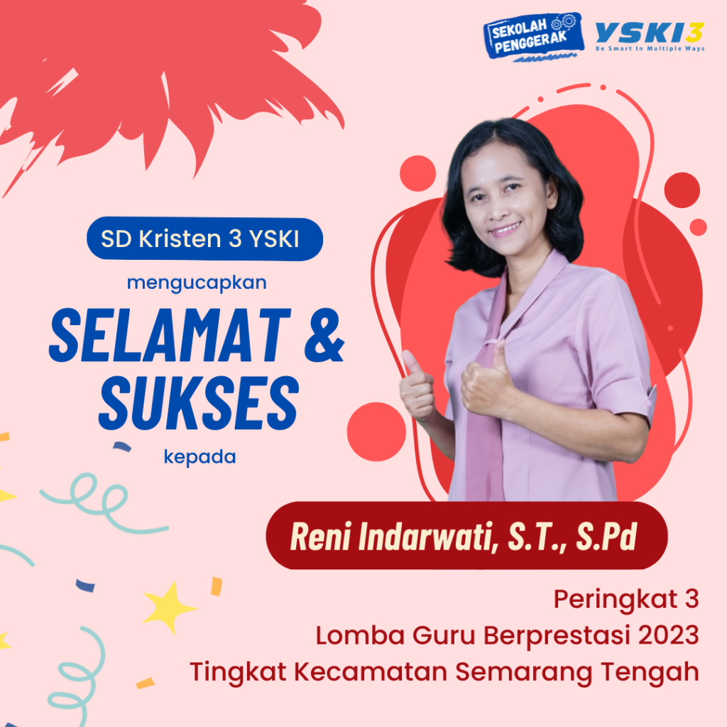SMART, Prestasi Yess !! Lomba Guru Berprestasi 2023 Bulan Februari 2023, merupakan bulan yang special, selain para siswa-siswi yang smart dan berprestasi, ternyata salah seorang guru juga membawa kabar harum bagi SD Kristen 3 YSKI. Peringkat 3 Lomba Guru Berprestasi 2023 Tingkat Kecamatan , diraih oleh Miss Reni Indarwati, S.T., S.Pd. Hal ini merupakan suatu …